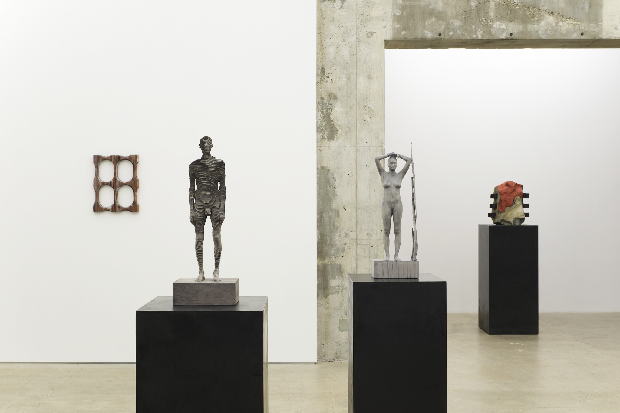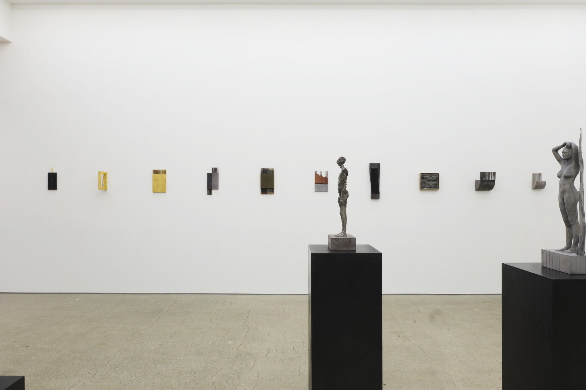 ライフサイズの具象⽊彫を中⼼に制作してきたデメッツは、近年、⼩〜中サイズの抽象⽊彫へと制作領域を広げています。形象表現から距離を置くことで、⽊という素材が内包する時間や物質性そのものを、より純度の⾼いかたちで顕在化させてきました。