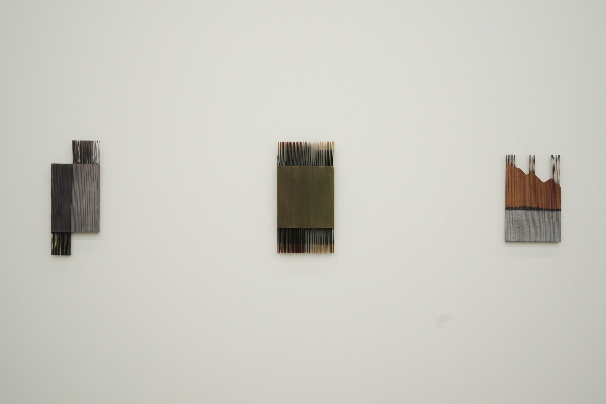 本展で紹介する作品は、19世紀後半にイタリア・アルト・アディジェの植林地から回収されたセコイア材を⽤いて制作されています。デメッツは、樹⽊の成⻑過程で形成される年輪のうち、柔らかな春⽬を削ぎ落とし、硬く⽬の詰まった冬⽬のみを残すという独⾃の⼿法を⽤います。この⾏為によって、成⻑と⽼化、蓄積と消失といった時間の層が際⽴ち、「冬」というメタファーを通して、⽊材に刻まれた歳⽉が静かに浮かび上がります。