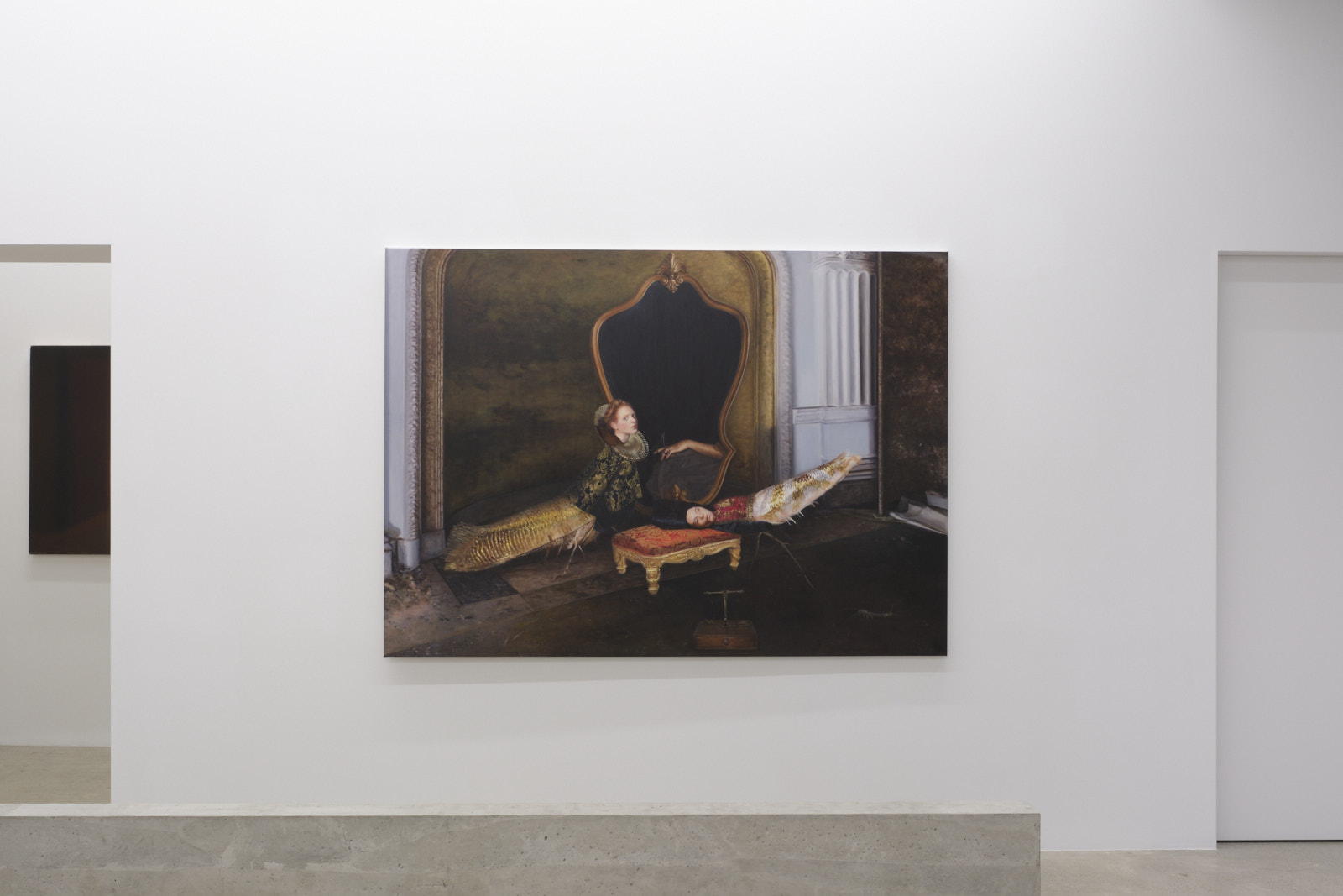 While Vittorio’s paintings portray specific characters, I take a different path by obscuring my figures. I’m less interested in depicting individual identities than in exploring the essence of Being and its aura. My interiors are deserted, but I still want to create the feeling that you are entering an inhabited space. In my latest interiors, I was particularly inspired by metaphysical painting.