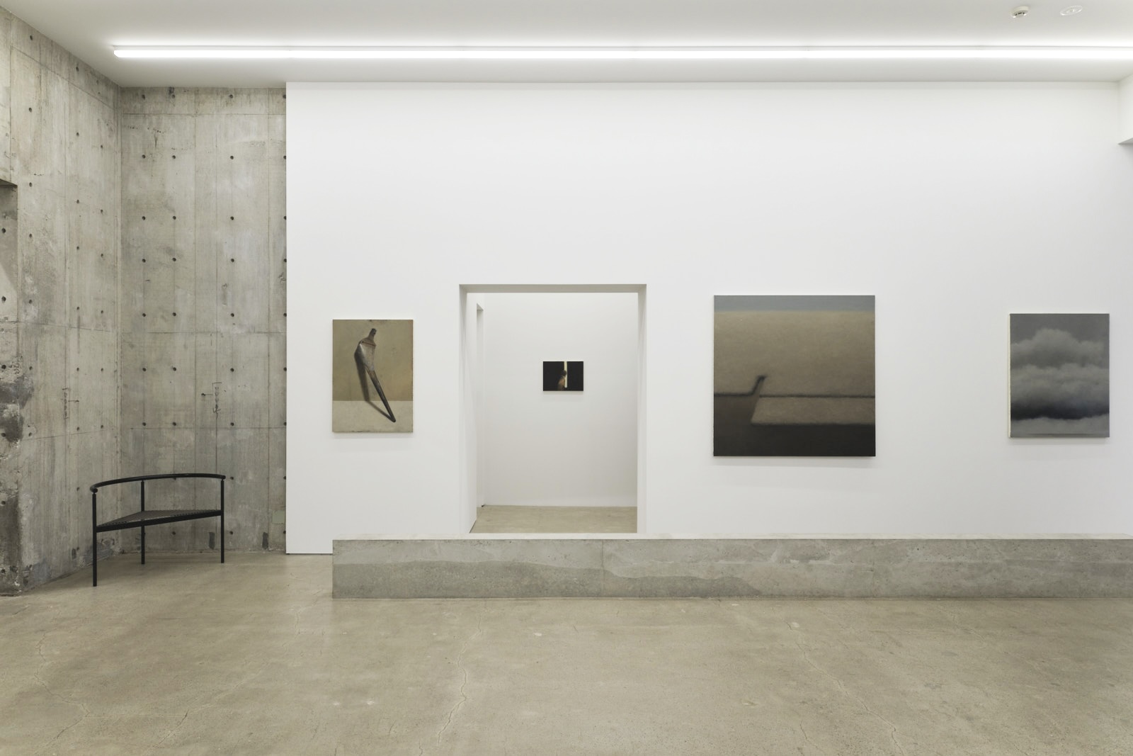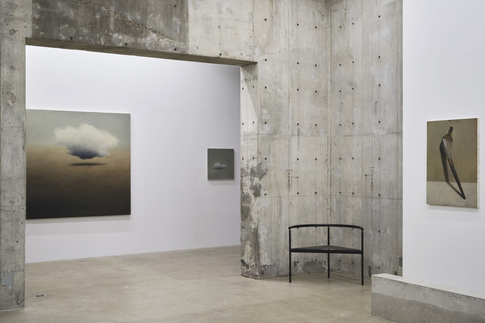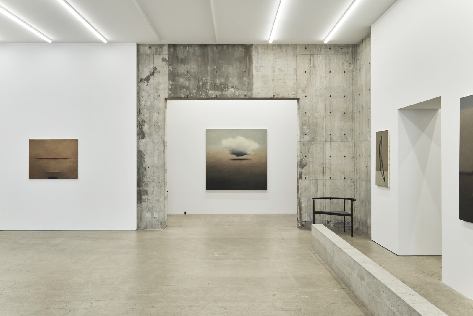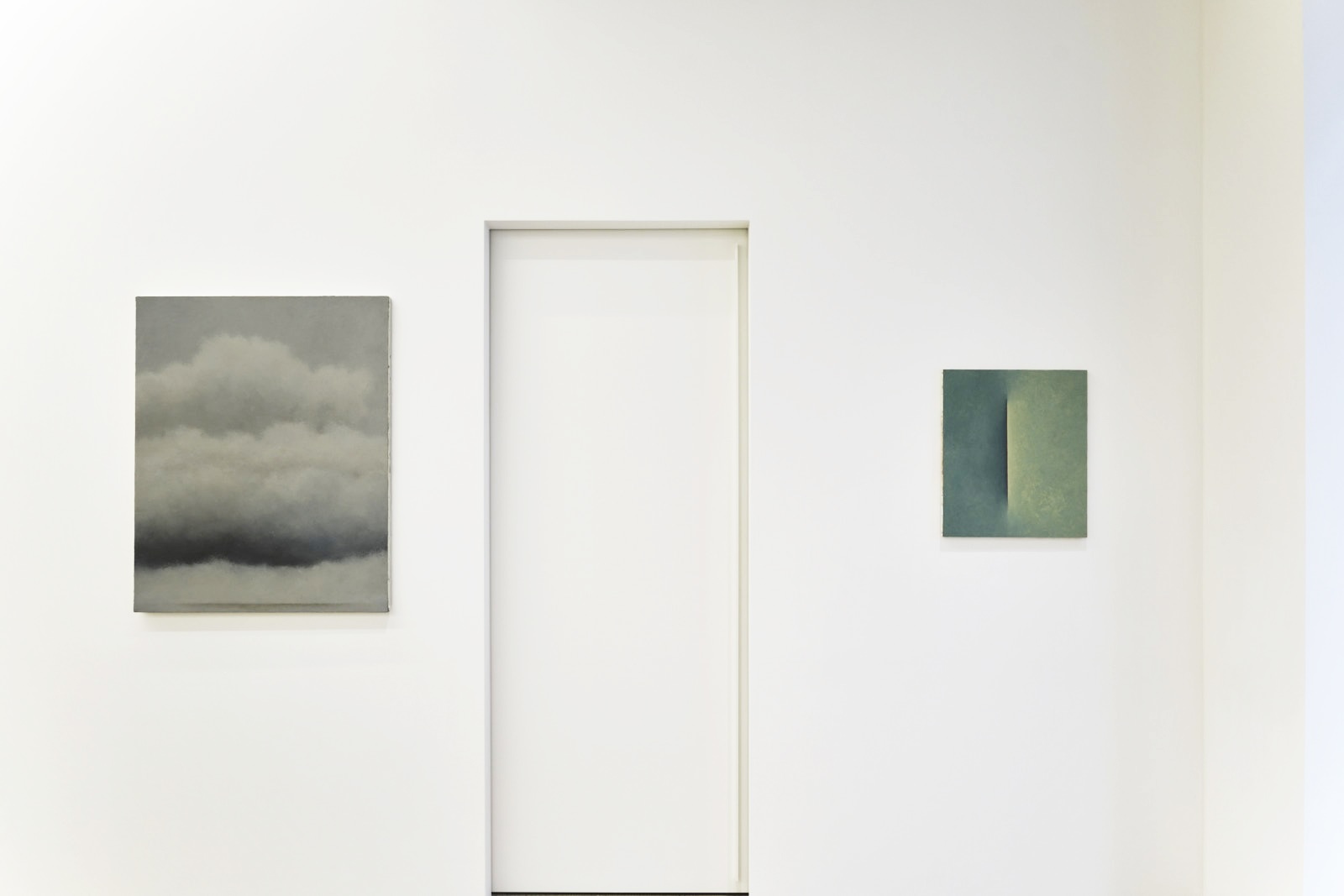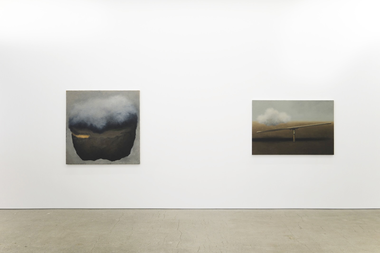制作において、不可視を可視化する、という姿勢を積み重ねてきた平松は、雲やシーソー、土や石の塊、そして線といったモチーフを描き続けてきました。しかし、本展に向けて描いていく中で、初めて可視化できるものに不可視を確認することができたといいます。内だけではなく外の時空で触れることができるものをモチーフとして描きながら、体内風景へと潜る制作の姿勢を投影させた作品群は、彼女の新境地とも言えます。