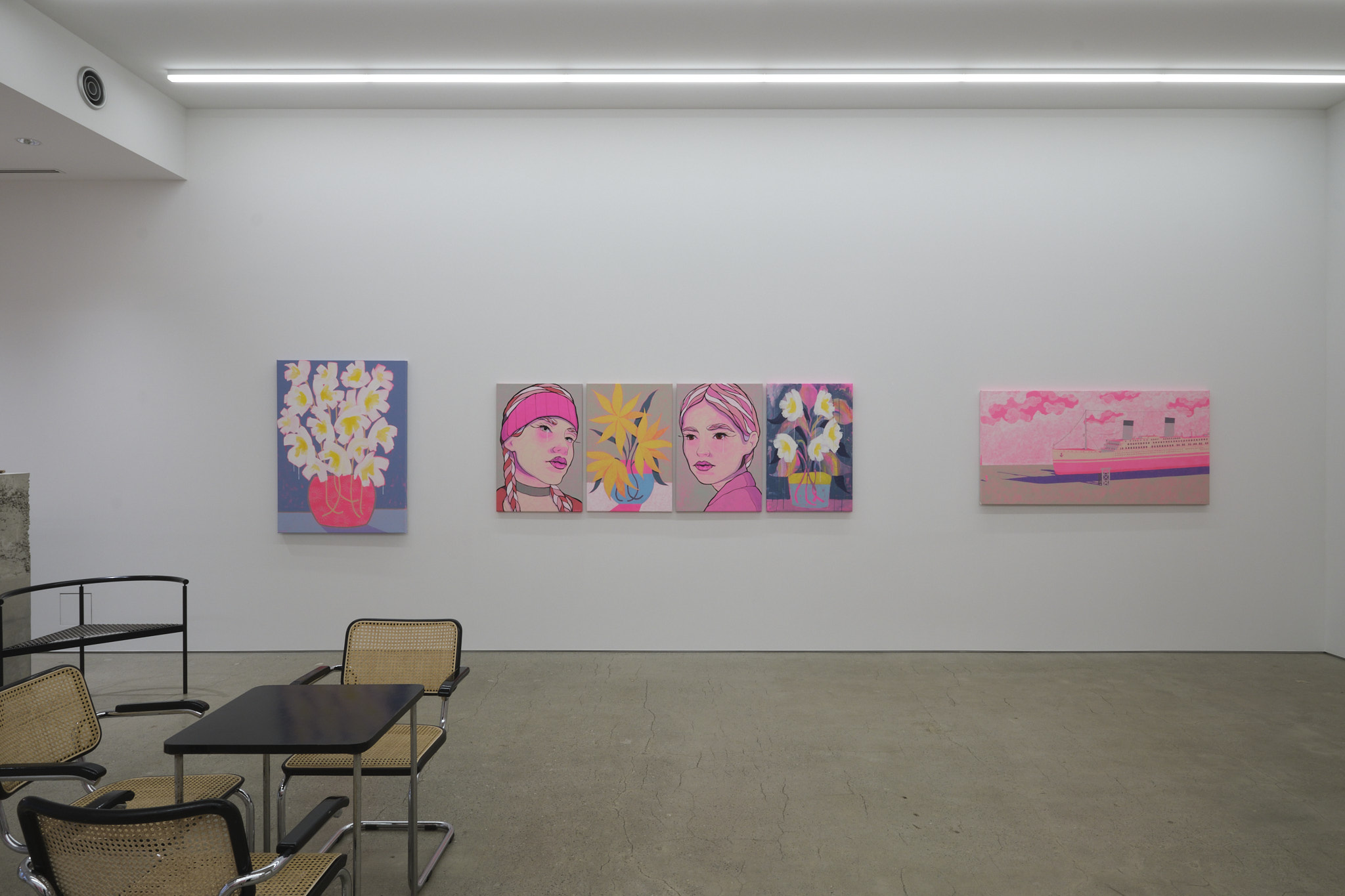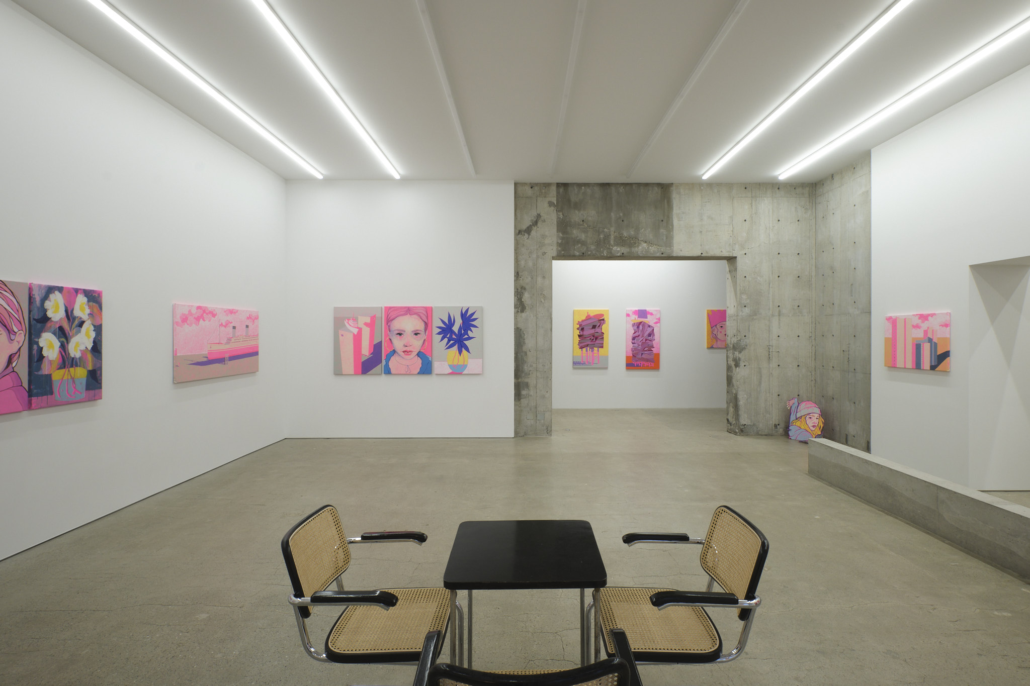 本展のために描き下ろした新作「PINK」では、描かれた色彩や筆致に新たな一面を見ることができます。エルボチョは、まず全てのキャンバスをアグレッシブなネオンピンクに塗り、その後加筆していく独創的なスタイルを見出しました。